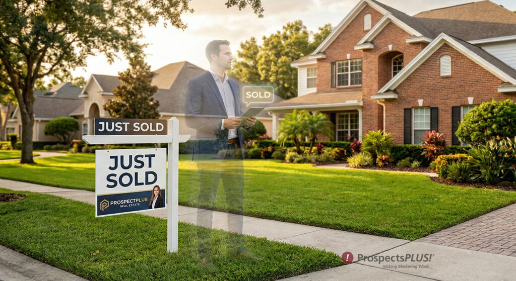 Use ProspectsPLUS! Just Sold Postcards paired with a targeted search with our MapMy Mail Tool to hit the highest-potential homes before your sign comes down.